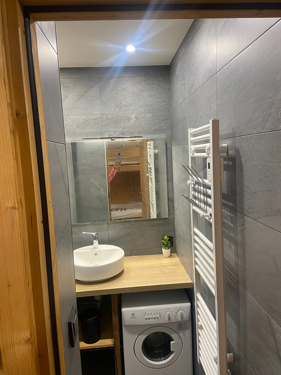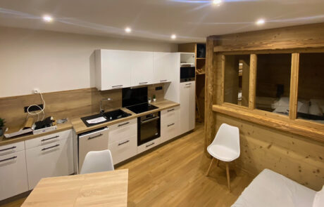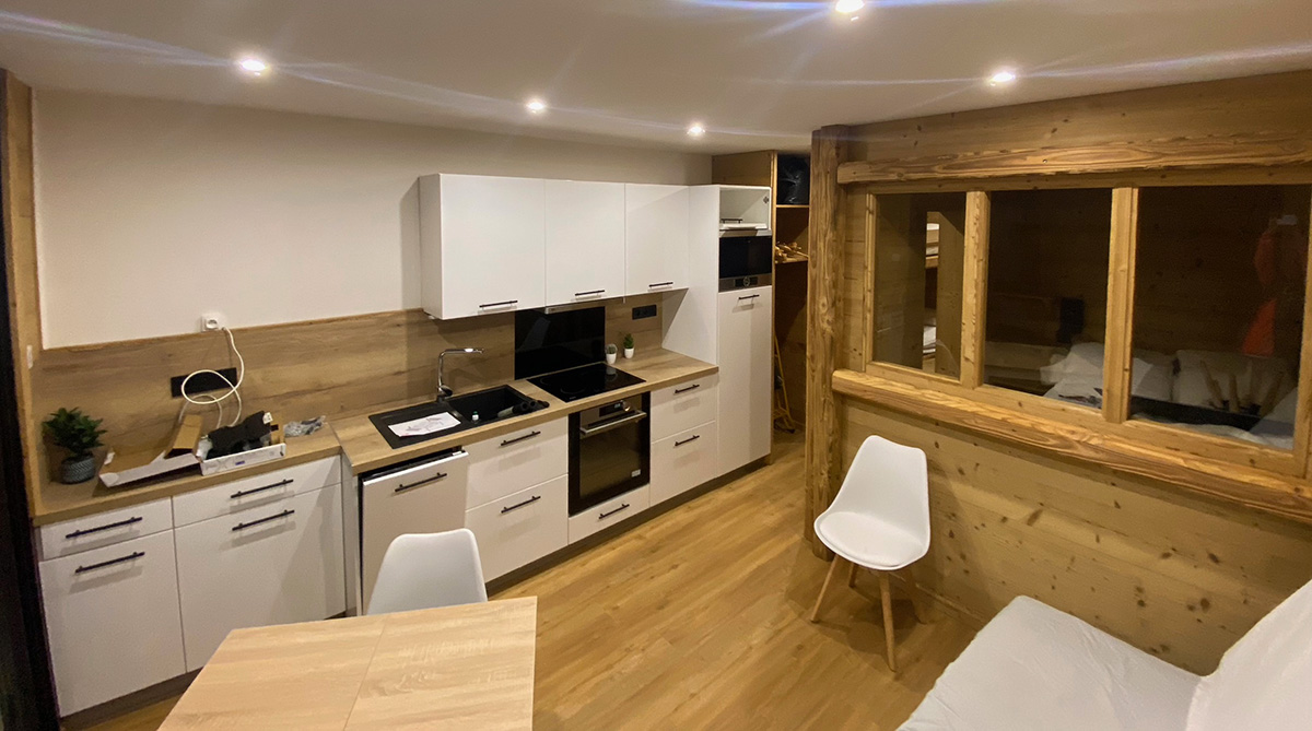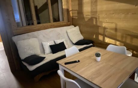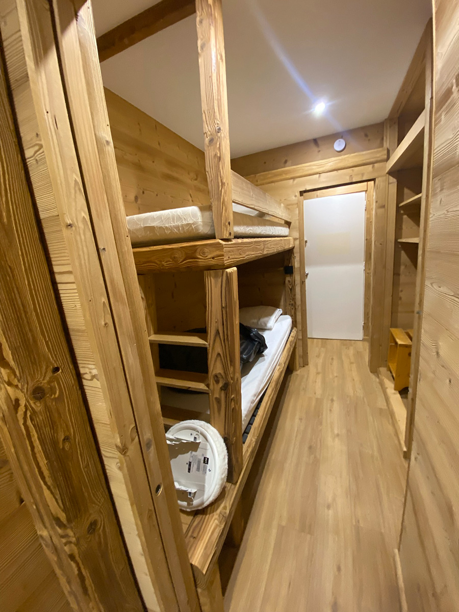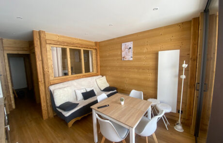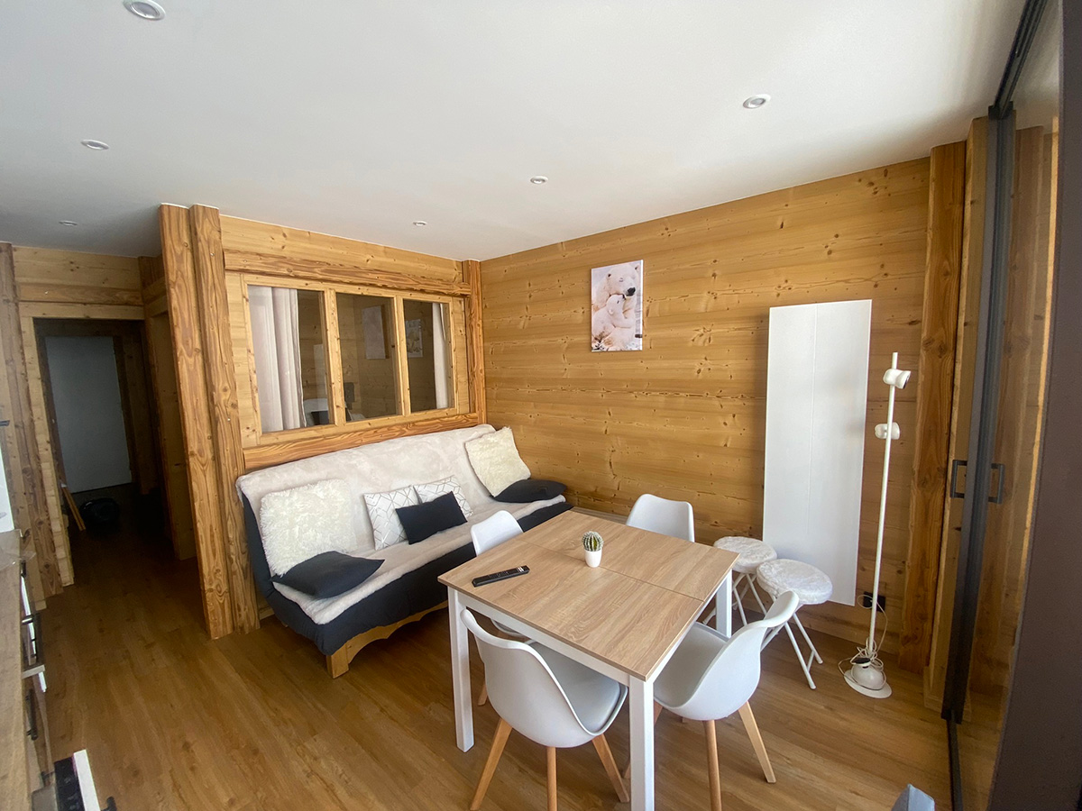 Studio plein sud de 30 m2, sur deux pièces, une alcôve pour le grand lit de 140cm, un coin montagne avec deux lits superposés.