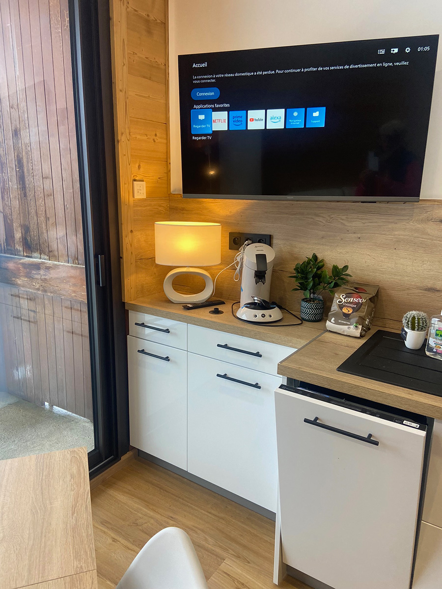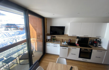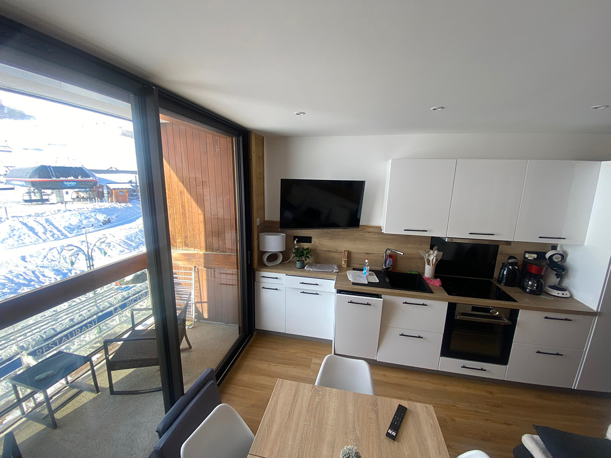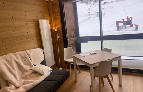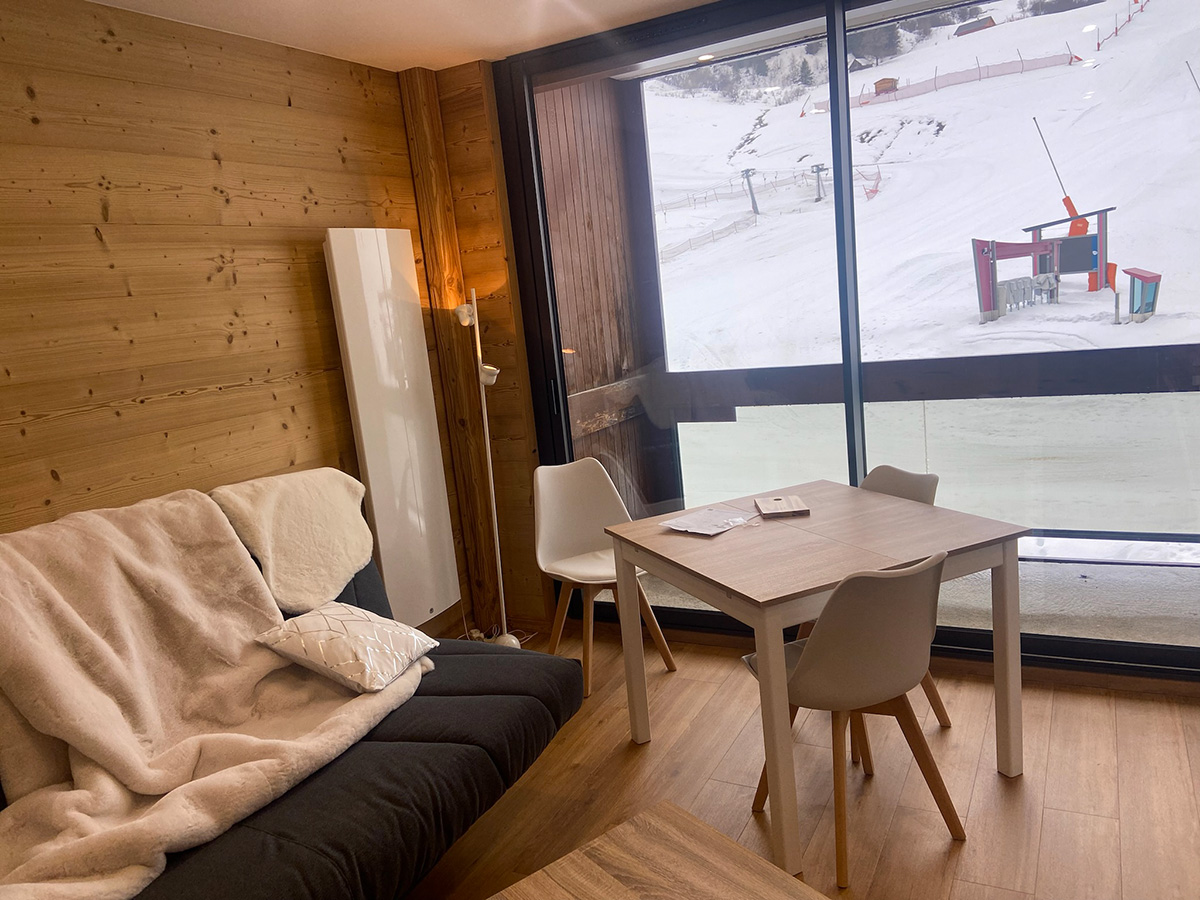 Studio agréable et très idéalement situé. Front de neige, face aux pistes, plein soleil.